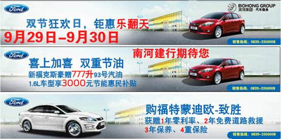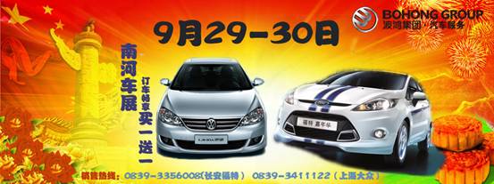 2012年9月29號-2012年9月30日凱時尊龍人生汽車•廣元長安福特中鴻店、凱時尊龍人生汽車•廣元上海大眾凱時尊龍人生店針對雙節(jié)特推出《凱時尊龍人生汽車雙節(jié)狂歡日,鉅惠樂翻天》車展,在該時間段內(nèi),親臨活動現(xiàn)場購車可享受“買一送一”的優(yōu)惠,詳情咨詢:0839-3356008(長安福特);0839-3411122(上海大眾);