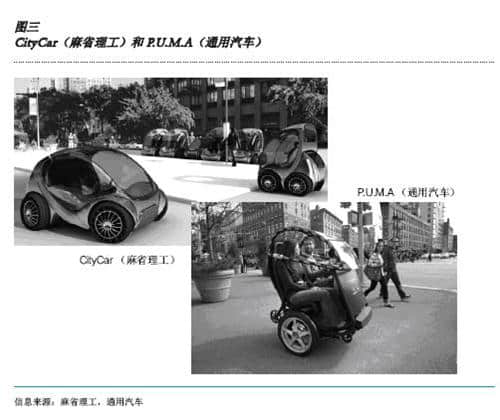 車輛將使用智能電網,后者將電力供應與電子停車兩者相結合 - 根據空余車位數、使用情況和里程數進行動態(tài)定價 - 停車場同時還是充電站;發(fā)電設備遍布各地,而且具備儲電功能,并進一步支持風能與太陽能。設計師將擁有更靈活的測試及試驗空間 - 未來的電動車可能再也不會有方向盤,情況就好比具備電傳控制律系統(tǒng)(fly-by-wire)的客機不再需要傳統(tǒng)的操縱桿一樣。麻省理工學院的CityCar和通用汽車的P.U.M.A概念車也許是此類微型車(USV)的最早雛形(見圖三)。