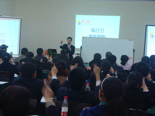 成立儀式后,培訓(xùn)中心和國(guó)內(nèi)最有實(shí)力的余世維博士旗下名仕碩學(xué)領(lǐng)袖學(xué)院合作,特邀臺(tái)灣地區(qū)著名執(zhí)行力培訓(xùn)專家王時(shí)成老師為大家講授《如何避免執(zhí)行力的12個(gè)陷阱》課程。王老師為我們重點(diǎn)講述:提高執(zhí)行力對(duì)團(tuán)隊(duì)目標(biāo)和個(gè)人目標(biāo)實(shí)現(xiàn)的重要意義;提高團(tuán)隊(duì)執(zhí)行力要從哪幾個(gè)方面入手;如何在團(tuán)隊(duì)中創(chuàng)造執(zhí)行的文化,執(zhí)行的氛圍;提高執(zhí)行力就是目標(biāo)導(dǎo)向、全力以赴、不折不扣;什么樣的制度流程能支持到企業(yè)目標(biāo)計(jì)劃的有效執(zhí)行;如何通過(guò)加強(qiáng)目標(biāo)管理、過(guò)程管控,來(lái)提高團(tuán)隊(duì)執(zhí)行力。