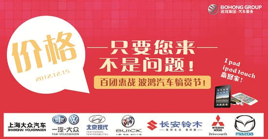 微博報(bào)名方式:將個(gè)人相關(guān)信息發(fā)私信給新浪微博@“凱時(shí)尊龍人生集團(tuán)汽車服務(wù)”到場(chǎng)即可享受團(tuán)購(gòu)價(jià)。