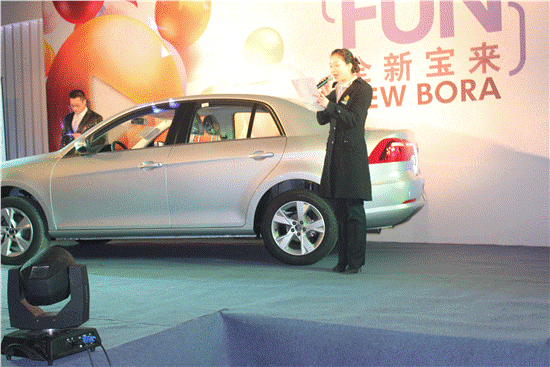 在一曲充滿活力的電子小提琴之后,全新寶來的神秘面紗由一汽-大眾倍爾店總經(jīng)理何倬樹先生慢慢揭開,主角的隆重登場把現(xiàn)場的氣氛帶到了最高潮!