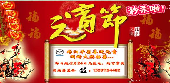 2013年02月20日-2013年02月24日,正月十五元宵到,家家戶戶齊歡笑。吃元宵、看元宵晚會、賞龍燈、逛燈會等等,這些都是每年元宵節(jié)家人團(tuán)聚必不可少的傳統(tǒng)項目。然而在蛇年開春之際,你有沒有想過在新年伊始給自己添置一份家業(yè),讓全家人蛇年過得風(fēng)風(fēng)火火呢。凱時尊龍人生集團(tuán)•綿陽一汽馬自達(dá)團(tuán)購秒殺即將上演啦!