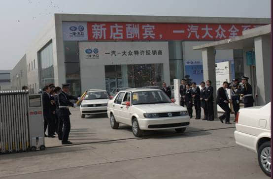 下午2時許,來自四川某駕校的教官們風(fēng)塵仆仆地來到了位于廬山南路三段的德陽盛鴻4S店,經(jīng)過短暫地準(zhǔn)備之后,為某駕校量身定做的捷達(dá)交車儀式正式開幕!遠(yuǎn)道而來的賓客們首先在4S店的門口合影。