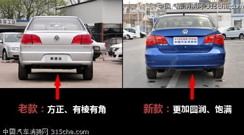 尾部和前臉一樣徹底改變,但沒(méi)有前臉那么自然,線條還能看出一點(diǎn)老款捷達(dá)的硬朗;尾燈造型和前大燈相呼應(yīng),猛地一看能讓人聯(lián)想到新速騰,給人的感覺(jué)也更加時(shí)尚,相比之下老款捷達(dá)則老氣許多。