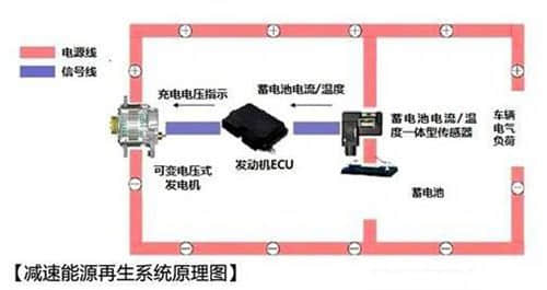 所謂的減速能源再生系統(tǒng),從工作原理上看,其實(shí)就是我們熟知的制動(dòng)能量回收系統(tǒng)。根據(jù)文檔中的資料介紹,其采用了可變電壓式發(fā)電機(jī),發(fā)電工作在車輛減速時(shí)進(jìn)行,怠速及加速、巡航時(shí)通過消耗充電儲(chǔ)存在蓄電池中的電力控制發(fā)電。在控制發(fā)電的過程中,發(fā)動(dòng)機(jī)負(fù)荷降低、油耗降低。把握車輛電氣負(fù)荷以及蓄電池狀態(tài)的同時(shí),在高精度下進(jìn)行發(fā)電控制,通過充分發(fā)電來將油耗控制在最低。