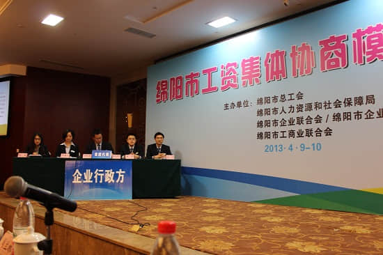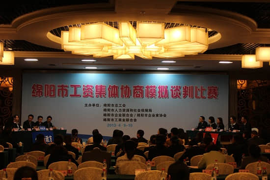 為了在全市營(yíng)造開(kāi)展工資集體協(xié)商的良好氛圍,進(jìn)一步提高工資集體協(xié)商代表的能力和水平,4月9日-10日,由市總工會(huì)、市人社局、市企業(yè)聯(lián)合會(huì)、市企業(yè)家協(xié)會(huì)、市工商聯(lián)聯(lián)合舉辦的工資集體協(xié)商模擬談判在綿陽(yáng)豪瑞特酒店舉行。