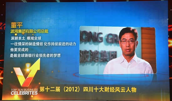 2013年5月30日,第十二屆(2012)四川十大財(cái)經(jīng)風(fēng)云人物頒獎典禮隆重舉行,集團(tuán)總裁董平當(dāng)選“第十二屆(2012)四川十大財(cái)經(jīng)風(fēng)云人物”。