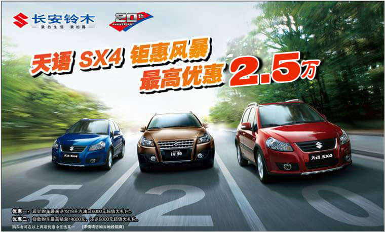 即日起到6月30日,參與“天語 SX4 520輕構(gòu)購”,分期付款購買天語SX4指定車型,首付最低只需5萬元,就可以輕松將天語 SX4開回家,樂享有車生活。用戶可以尊享四年0利息、0手續(xù)費(fèi)和兩輛新車優(yōu)惠還可以享受超值大禮包。四年內(nèi)可暢享長安鈴木2輛全新車型,首輛新車享受“0”利息、“0”手續(xù)費(fèi)、一年“0”月供;剩下的尾款在新車使用1年后,您可以選擇一次性付清,也可以辦12個月的分期還款。這兩年期間都享受0利息、0手續(xù)費(fèi)。