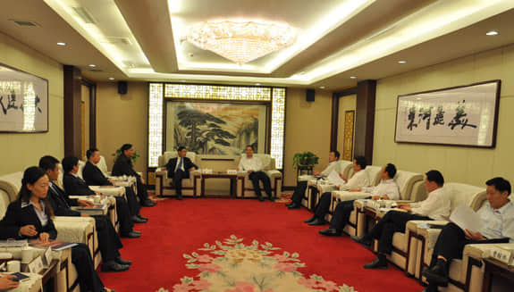 2013年10月10日,集團總裁董總攜總裁助理兼制造事業(yè)部總經(jīng)理張送等集團領(lǐng)導赴山西省運城市絳縣參觀考察,運城市市長王清憲親切會見董總一行。
