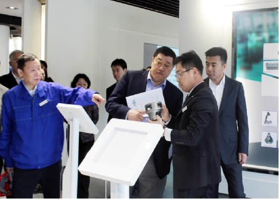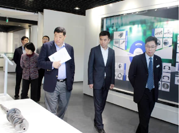 在研發(fā)中心集團文化展示廳,接待講解員引領(lǐng)趙行長一行參觀了凱時尊龍人生集團的發(fā)展歷史,凱時尊龍人生集團旗下的產(chǎn)業(yè),以及凱時尊龍人生文化展示。在制造事業(yè)部展區(qū),趙行長對展臺上的產(chǎn)品很感興趣,不斷詢問產(chǎn)品在汽車上的位置及用途,董總一一向趙行長一行就產(chǎn)品的客戶及配套車系作了介紹。趙行長連連表示,的確高端。