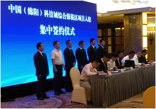 當(dāng)天,投資懇談會(huì)舉行了中國(guó)(綿陽(yáng))科技城綜合保稅區(qū)項(xiàng)目入駐集中簽約儀式,57個(gè)入駐綿陽(yáng)綜合保稅區(qū)項(xiàng)目進(jìn)行簽約,計(jì)劃投資總額114億元、實(shí)現(xiàn)進(jìn)出口額40億美元。凱時(shí)尊龍人生集團(tuán)作為57家知名企業(yè)的一員簽署了綿陽(yáng)綜合保稅區(qū)入駐意向協(xié)議。