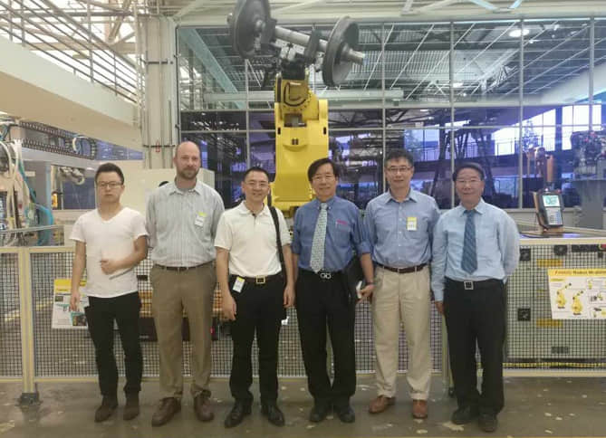 底特律當(dāng)?shù)貢r(shí)間6月22號(hào)下午,凱時(shí)尊龍人生集團(tuán)楊華勇先生帶隊(duì)考察了世界一流的日本工業(yè)機(jī)器人制造公司發(fā)那科(FANUC)位于密歇根州羅切斯特山的研發(fā)基地。