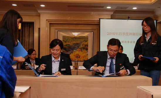 集團人力資源副總監(jiān)、目標(biāo)督察辦部長賴寒松通報集團三大事業(yè)部2016年前3季目標(biāo)完成情況以及4季度沖刺目標(biāo)任務(wù);制造事業(yè)部總經(jīng)理助理兼威斯卡特工業(yè)(匈牙利)有限公司總經(jīng)理劉安凌代表集團下屬子(分)公司發(fā)言,決心圍繞4季度沖刺目標(biāo)任務(wù)完善工作方案、創(chuàng)新工作舉措,全員共同努力,保證完成4季度沖刺目標(biāo)。董平董事長分別與制造事業(yè)部副總經(jīng)理劉蓉、汽車事業(yè)部總經(jīng)理梁智鋒、分管綜合事業(yè)部分的集團副總裁黃勇分別簽訂2016年4季度沖刺目標(biāo)責(zé)任書。