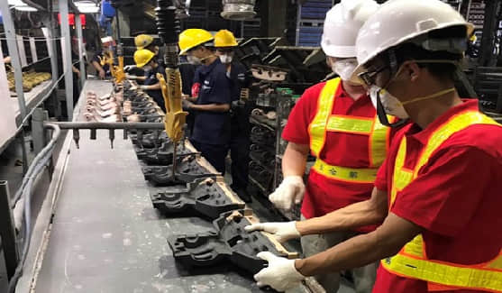 座談會(huì)結(jié)束后,武漢經(jīng)開區(qū)、威斯卡特工廠領(lǐng)導(dǎo)與同學(xué)們親切合影留念。在湯慶生總經(jīng)理的帶領(lǐng)下,同學(xué)們穿上工廠防護(hù)用品,興致盎然地進(jìn)入車間,開始現(xiàn)場(chǎng)實(shí)踐活動(dòng),先后參觀了GM1.5項(xiàng)目產(chǎn)品的機(jī)加工藝、生產(chǎn)流程、檢驗(yàn)檢測(cè)設(shè)備,工廠現(xiàn)場(chǎng)負(fù)責(zé)人向同學(xué)們?cè)敿?xì)介紹了生產(chǎn)線上的設(shè)備布局、半成品及產(chǎn)品、現(xiàn)場(chǎng)6S管理等。