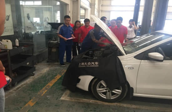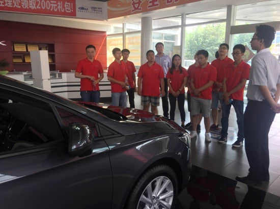 在寬敞明亮、氣派大方的汽車銷售展廳,熱情的客戶經(jīng)理按照接待購車客戶的標(biāo)準(zhǔn),向同學(xué)們?cè)敿?xì)介紹了本店的主打車型和熱門暢銷車型??蛻艚?jīng)理的現(xiàn)場(chǎng)講解既具專業(yè)性,也注重汽車趣味知識(shí)的傳遞,讓同學(xué)們?cè)诙潭虄尚r(shí)內(nèi)了解了品牌汽車的總體構(gòu)造、性能指標(biāo)、車型配置、車輛維修保養(yǎng)等基礎(chǔ)知識(shí)和購車、送保、送修等作業(yè)流程。最后,在店總的邀請(qǐng)下,同學(xué)們還參加了現(xiàn)場(chǎng)試乘試駕活動(dòng)。