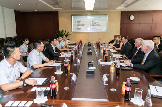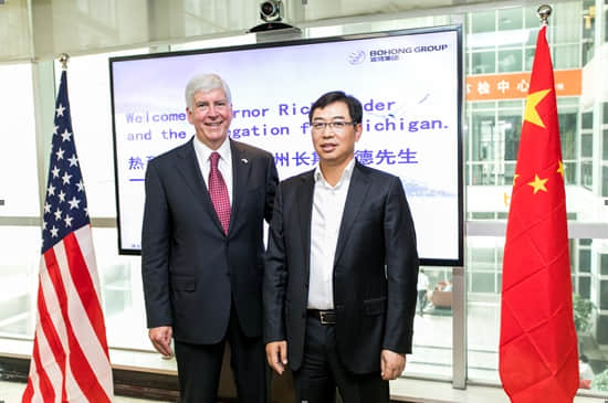 斯奈德州長向董平董事長介紹了密歇根州快速的發(fā)展勢頭和良好的投資環(huán)境。自其2011年就任州長以來,密歇根州的各項經(jīng)濟指標均有快速提升。到2016年,密歇根州營商環(huán)境排名自全美第41位上升至全美第7位,提供的制造業(yè)工作崗位數(shù)更是從全美48位上升至全美第一位。