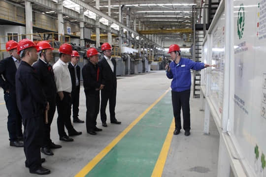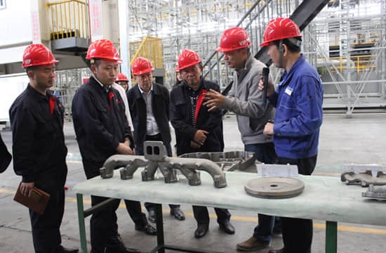 隨后,魏曉林一行馬不停蹄驅(qū)車前往綿陽好圣公司。在好圣二廠,好圣公司總經(jīng)理劉峰向客人詳細(xì)介紹了工廠工藝布局、產(chǎn)品定位及市場開發(fā),重點介紹了美國應(yīng)達中頻感應(yīng)熔煉系統(tǒng)、德國KW水平有箱多觸頭靜壓造型線、德國HWS水平有箱多觸頭靜壓造型線、德國愛立許混砂系統(tǒng)等國際一流生產(chǎn)設(shè)備,并對德國KW、HWS線2018年產(chǎn)能計劃及未來前景進行了說明;在好圣一廠,魏曉林一行參觀了丹麥迪沙造型線和日本新東造型線,以及工廠生產(chǎn)現(xiàn)場。
