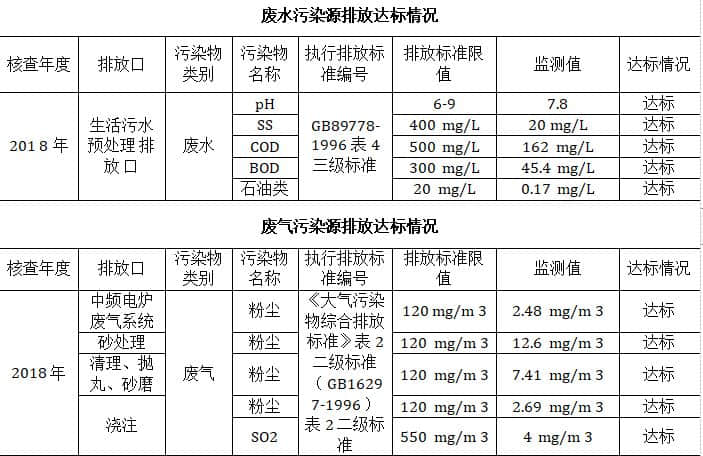 四川綿陽好圣汽車零部件制造有限公司廢氣、廢水和噪聲排放情況見下表。