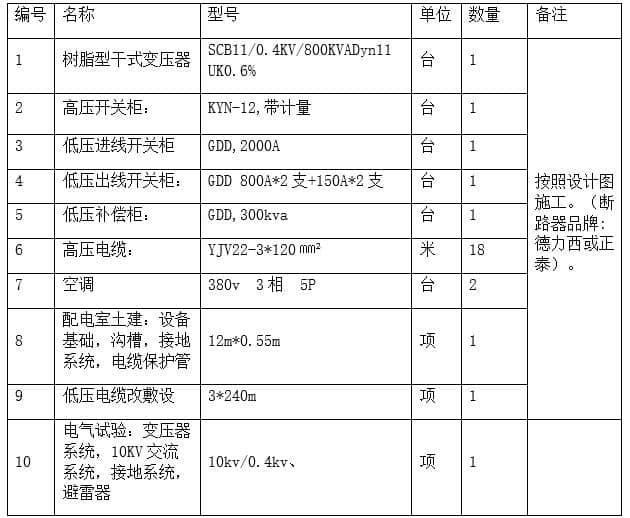5.施工內(nèi)容: 800KVA干式變壓器及高壓進線柜、低壓出線柜、補償柜、電纜溝建設(shè)安裝。