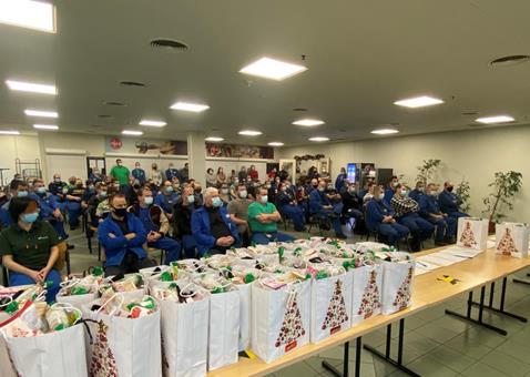 工作人員早早地準(zhǔn)備好圣誕禮品,利用一線工人交接班的空隙,將圣誕祝福送到每一位同事的手中,感謝這一年來(lái)他們的堅(jiān)守和不離不棄,感謝他們對(duì)公司的信任和支持。正是因?yàn)槿w員工對(duì)公司強(qiáng)大的歸屬感和凝聚力,匈牙利工廠才能無(wú)所畏懼,充滿力量,一往無(wú)前。