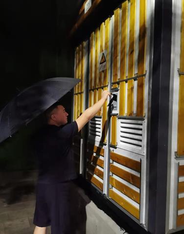 位于綿陽市游仙區(qū)的宇興項目已做好項目部建設、施工圍擋搭建、施工用電工程等前期準備工作,開工在即。7月9日晚雨勢逐漸增大,張云輝對已通電變壓器的運行情況、施工圍擋基礎的穩(wěn)固性等重點部位逐一進行安全檢查。