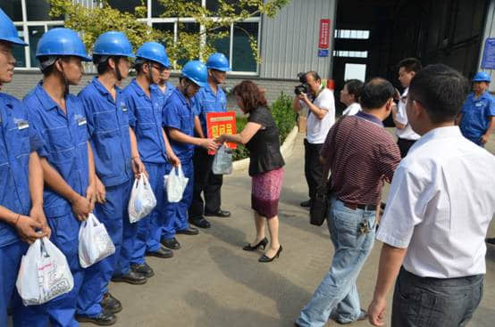 為切實維護高溫期間廣大職工的身體健康,改善職工的生產(chǎn)生活條件,保障廣大職工在生產(chǎn)過程中的安全與健康,7月21日省總工會副主席紀小玲,省總工會宣教部部長黃小立,省總工會女工部副部長陽登琦來好圣公司,向奮戰(zhàn)在高溫一線的生產(chǎn)職工開展“送清涼”活動。好圣公司總經(jīng)理宋榕輝、集團公司工會副主席張麗等領(lǐng)導(dǎo)陪同慰問。