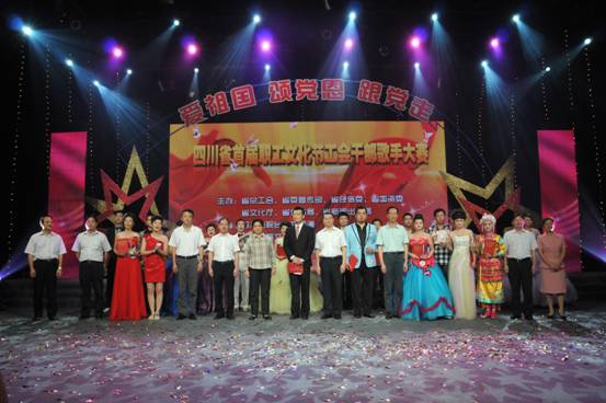 8月4日晚,由四川省總工會、省委宣傳部、省國資委、省經(jīng)信委、省文化廳、省體育局、省新聞出版局共同主辦的四川省首屆職工文化節(jié)工會干部“愛祖國、頌黨恩、跟黨走”歌手大賽決賽在四川電視臺演播廳隆重舉行,當晚四川省委常委、省總工會主席李登菊親臨現(xiàn)場觀看比賽并為獲獎選手頒獎,公司藝術團朱艷、王熊、王宏宇代表公司工會參加決賽,經(jīng)過近兩個小時激烈的角逐,在由省內(nèi)頂尖國內(nèi)外音樂界知名的5位評委的嚴格評選下,最終以一曲《羌族鍋莊舞曲》的深情演唱贏得了現(xiàn)場陣陣掌聲,得到了省委領導和各位評委及其他參賽選手的一致好評,最終獲得民族組銀獎的好成績。