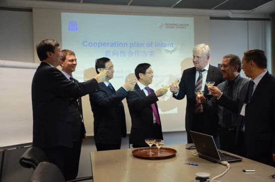 圖二:凱時(shí)尊龍人生集團(tuán)高層與EB公司高層慶祝簽約成功