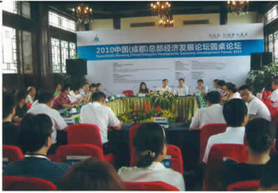 2010年8月10日由成都市政府、國務(wù)院發(fā)展研究中心市場經(jīng)濟(jì)研究所共同主辦的2010中國總部經(jīng)濟(jì)發(fā)展論壇在成都市舉行。國務(wù)院發(fā)展研究中心副主任劉世錦,成都市委副書記唐川平、副市長劉家強(qiáng)出席論壇開幕式。
