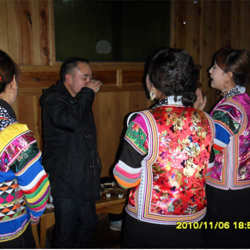 車隊到達(dá)山寨,熱情的藏民用青稞酒迎接尊貴的客人