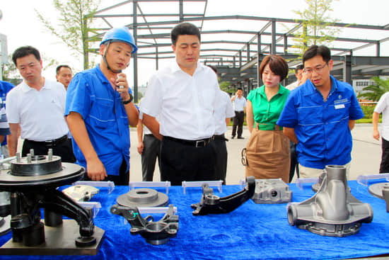 來到機(jī)加車間,緊張繁忙的數(shù)控生產(chǎn)線上操作員正在有序的作業(yè)生產(chǎn)。林市長(zhǎng)走上數(shù)控車床操作踏板,仔細(xì)查看公司正在進(jìn)行車、銑加工排氣管的作業(yè)過程。進(jìn)入后處理車間,宋總向林市長(zhǎng)介紹鑄件的拋丸、清洗、打磨過程,并陪同林市長(zhǎng)查看了大件產(chǎn)品砂心的制作過程。
