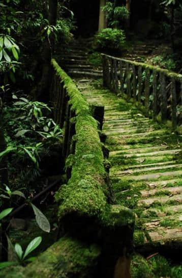 楠木溪的水和天臺(tái)山的水一樣,富有靈性。沿小路上山,溪流一直蜿蜒相隨。時(shí)而忙不擇路地?cái)D入石縫,急急沖下陡坎,跌成一攤耀眼的碎水晶;時(shí)而信步游過堤壩,撒成一簾水幕,再聚成一汪幽潭。早有人按捺不。興烈庀硎芴都湟叭で辶。路邊草叢里不知名的野花星星點(diǎn)點(diǎn),千姿百態(tài);野草的蔓藤繞著樹枝努力地向上打拼,一兩顆奇怪青澀的果子掛在其間;三四桿楠竹瘦綠一片;重重疊疊的草葉上掛滿雨滴,映著遠(yuǎn)山近麓的樹影。抬頭望望不遠(yuǎn)處的山坡,云霧縹緲,高大的松柏剪影了一片天空。再遠(yuǎn)處,就是無邊的原始森林了,密密地松、柏、水杉彼此相依,樹干筆直,無語望天,營造出異常幽遠(yuǎn)的意境。