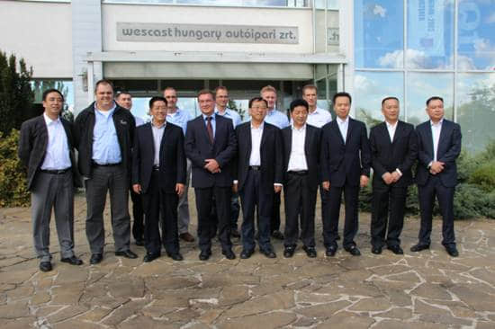2012年10月10日,凱時尊龍人生集團黨委書記張健、總裁助理周其偉陪同綿陽市人大主任蔣仁富、綿陽市總工會趙志強副主席等一行7人的綿陽政府企業(yè)代表團訪問了威斯卡特匈牙利工廠。威斯卡特匈牙利工廠總裁西蒙先生及鑄造廠長巴塔先生、機加工廠廠長馬特約茨先生熱情接待了綿陽政府企業(yè)代表團一行。