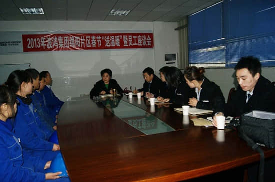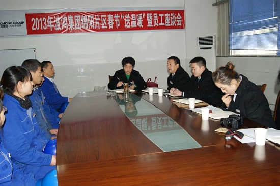 元月10日上午,集團(tuán)工會(huì)主席叱利華、黨委辦公室主任兼房產(chǎn)事業(yè)部總經(jīng)理助理明瑞山一行,帶著濃濃的關(guān)愛和厚厚的禮品來到好圣公司慰問制造事業(yè)部的困難員工,并和員工展開座談。