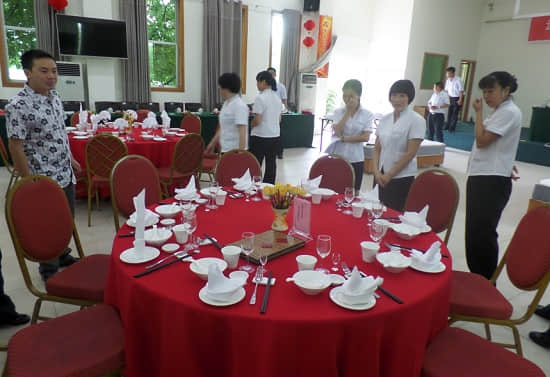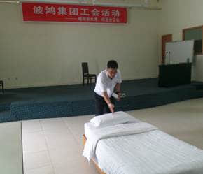專業(yè)的就是專業(yè)的,選手都在規(guī)定的時間15分鐘內(nèi)完成了正規(guī)的中式鋪臺的所有項目。全公司人員工參與點評,梁總和各評委依次點評,讓非專業(yè)選手也在其中學習到很多鋪臺的巧門。