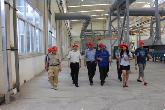 隨后,胥主席一行在集團副總裁萬濤引領(lǐng)下,深入清理車間、造型、電爐車間查看員工工作環(huán)境和勞動保護(hù)措施,對好圣一分廠的勞動保護(hù)和防暑降溫措施予以肯定。在好圣二分廠,萬總向胥主席一行詳細(xì)介紹了二廠設(shè)備引進(jìn)、市場開拓、訂單取得和五年戰(zhàn)略規(guī)劃情況。