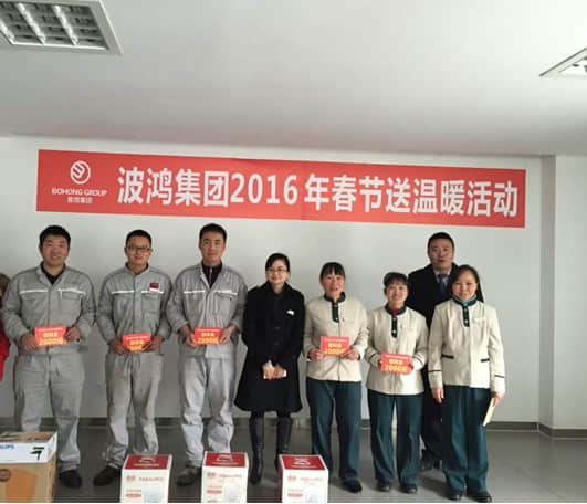 為了進一步推動“送溫暖”活動和幫扶工作深入開展,幫助集團困難職工度過一個歡樂、祥和的春節(jié)。2月2日,帶著集團公司的深切關(guān)懷和牽掛,集團財務(wù)總監(jiān)孔弘及集團工會人員前往生產(chǎn)一線開展新春送溫暖慰問活動,親切看望慰問集團困難職工,向他們致以誠摯的問候和新春的祝福。并將2000元慰問金和各單元準(zhǔn)備的慰問品送到員工手中。