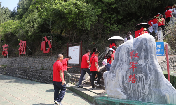 在莊嚴(yán)肅穆的飛龍山公祭廣。逋徘嗄暌黃鹱喑豆琛,傾聽飛龍山紅軍紀(jì)念園的情況介紹,并向烈士們鞠躬致敬、敬獻(xiàn)鮮花。隨后大家沿著長長的石梯上行,重走紅軍路,尋著紅12師34團在飛龍山戰(zhàn)斗的印跡,瞻仰紀(jì)念碑林、參觀飛龍山蘇維埃政府舊址、紅軍戰(zhàn)壕等地,攀爬瞻思梯,觸摸歷史時空,追憶紅色故事,感悟初心使命,汲取前行力量,感念著革命先烈們奮勇戰(zhàn)斗、不畏犧牲的光輝歲月。