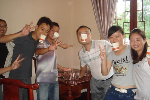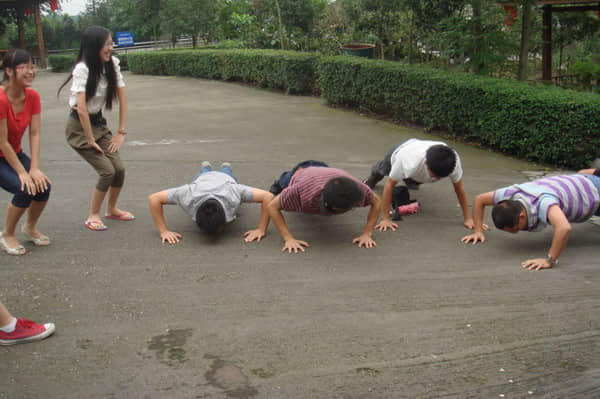 午飯的時(shí)候,我們安排了三個(gè)小游戲,第一個(gè)是《看看你喜歡誰?》;第二個(gè)游戲是《你來比劃我來猜》;最有意思的還是第三個(gè)游戲:《紙杯傳水》。在這個(gè)游戲中我們兩個(gè)公司分成兩個(gè)隊(duì)伍進(jìn)行比賽,大家各施才能,有的咬著杯沿,有的選擇咬杯底,在五分鐘之內(nèi)農(nóng)業(yè)公司成功傳遞了4杯水,而園林公司在四分鐘的時(shí)候就成功傳遞了5杯水。經(jīng)過大家的一致決定,輸?shù)舻年?duì)伍將接受做俯臥撐十個(gè)的懲罰,農(nóng)業(yè)公司愿賭服輸,心甘情愿地接受了懲罰。