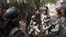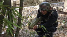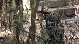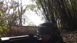 第一場戰(zhàn)役實地對抗賽,瞧,個個夠?qū)I(yè),手持機槍,匍匐在地,瞄準對方,準備射擊