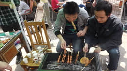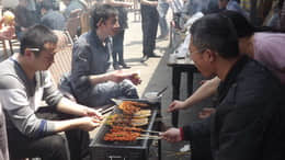 集體合影留念 激戰(zhàn)后,大家自己動手燒烤,看著有模有樣的……