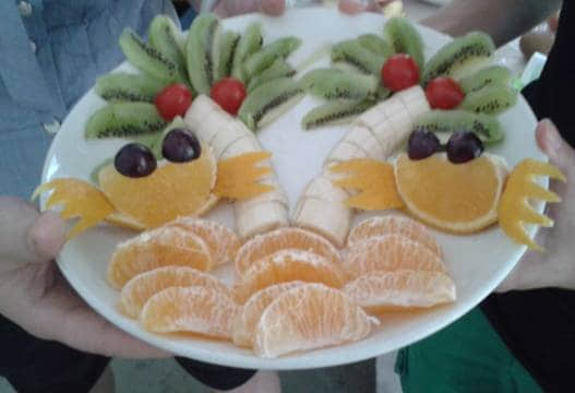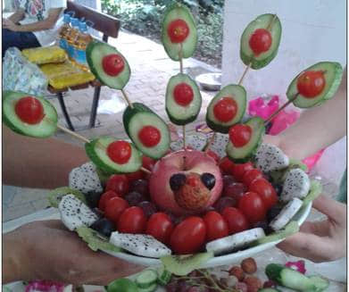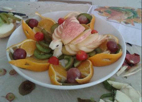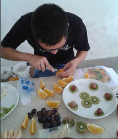 水果拼盤可不是女生的專利喔,瞧瞧我們的男同胞們,認(rèn)真起來還挺像回事呢!
