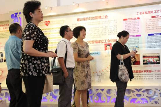 考察團(tuán)參觀了絲麗雅集團(tuán)工會(huì)委員會(huì)展覽大廳,有針對(duì)性地了解了絲麗雅工會(huì)組織構(gòu)建、工會(huì)管理創(chuàng)新及制度建設(shè)、工會(huì)干部素質(zhì)提升、民主管理及廠務(wù)公開七定六化、絲麗雅EP勞動(dòng)技能競賽、員工關(guān)愛、文體活動(dòng),以及創(chuàng)造“美麗、魅力、快樂”的企業(yè)文化產(chǎn)品與服務(wù)等方面內(nèi)容。隨后,深入海絲特纖維有限責(zé)任公司車間,參觀學(xué)習(xí)了基層黨工團(tuán)陣地建設(shè)。