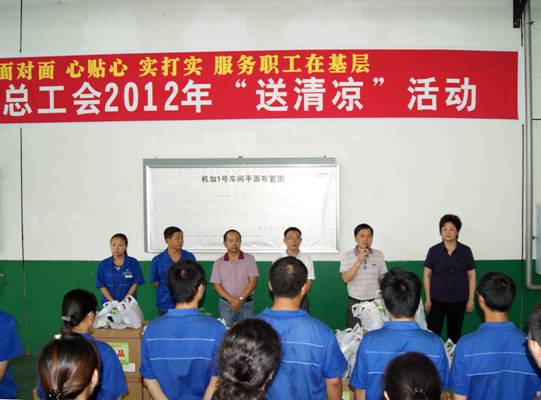 趙主席首先代表市總工會對公司全體員工送上慰問。他講到,時夏高溫,好圣公司員工在酷暑下仍堅持在一線崗位,市總工會歷來開展“冬送溫暖,夏送清涼”關(guān)愛職工活動,就是為了讓職工安全度夏,為大家創(chuàng)造一個良好的工作環(huán)境。他叮囑現(xiàn)場的職工要嚴格按照生產(chǎn)流程和技術(shù)規(guī)范,注意人身安全,特別是在高溫作業(yè)時,一定要注意防暑降溫。他要求集團公司工會要主動關(guān)心職工身心健康,落實高溫津貼,積極采取有效措施,預(yù)防因高溫天氣引發(fā)的中暑或其他生產(chǎn)安全事故,確保高溫期間一線職工的安全與健康,確保廣大職工安全、健康、清涼度夏。