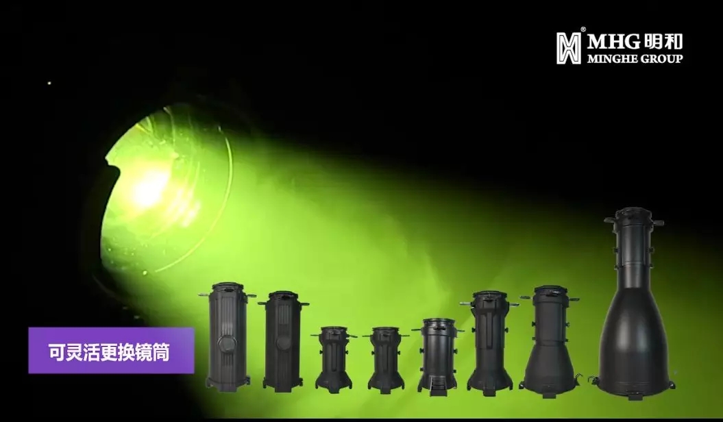 燈具具備靈活可變性,只需一種燈體便可更換各種鏡筒,可匹配5度、10度、14度、19度、26度、36度、50度7種定焦鏡筒,以及15度-30度、25度-50度2種變焦鏡筒,根據(jù)演出需求營造不同大小的光斑和光束,切割多樣的圖案形狀。