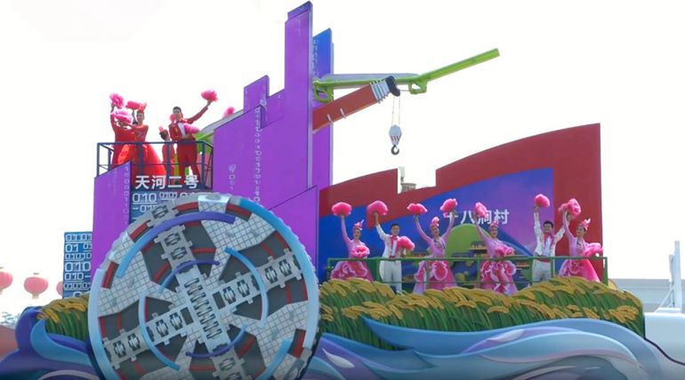 “瀟湘今朝”主題彩車匠心獨造,彩車長達15米、寬6米、高10米,重30噸。在整體造型設計上,車頭融合了磁浮、高鐵、工程車的抽象設計,呈現(xiàn)出工程概念藝術(shù)化造型。車身主體展現(xiàn)湖南“青山綠水”的生態(tài)環(huán)境與永不褪色的“紅色基因”,十八洞村、超級雜交水稻、工程機械、天河二號、張家界等湖南特色元素點綴其間,充分展現(xiàn)出湖湘兒女在“創(chuàng)新引領、開放崛起”戰(zhàn)略指引下,奮力建設富饒美麗新湖南的壯麗圖景!