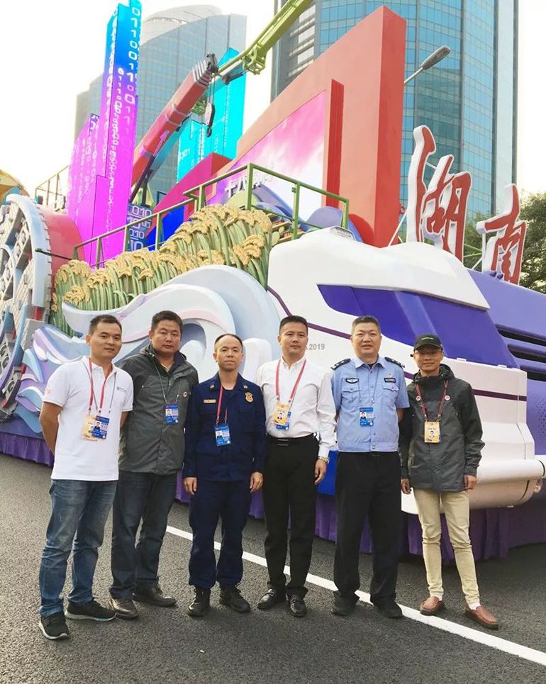 ▲湖南彩車隨車車長、副駕駛、消防、公安、技術(shù)保障工程師。