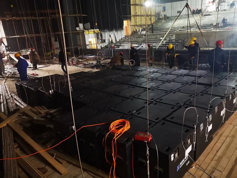7個(gè)日夜,168個(gè)小時(shí),從晨光熹微到落日余暉,從星辰朗月到黎明初陽(yáng)。918博天堂團(tuán)隊(duì)以24小時(shí)不眠不休的戰(zhàn)斗姿態(tài)將300余套控制和特效設(shè)備、347臺(tái)套演出燈具、500平方LED大屏,76只各類音箱投影系統(tǒng)以及舞臺(tái)區(qū)域的綜合布線等各類聲光影系統(tǒng)的設(shè)計(jì)、安裝與調(diào)試全部完工,以超出預(yù)期的硬核表現(xiàn)成功保障了24日晚上的彩排及后續(xù)的5場(chǎng)演出。