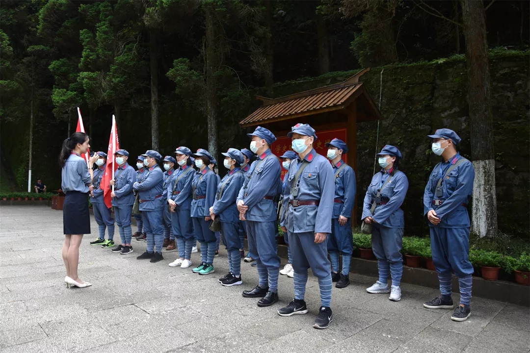 在黃洋界,黨員同志沿著曲折陡峭的臺階,來到當(dāng)年的戰(zhàn)壕、滾木滾石陣及挑糧小道舊址,感受革命戰(zhàn)爭的艱苦卓絕,親身體驗當(dāng)年語文課本中《朱德的扁擔(dān)》講述的挑糧小道。