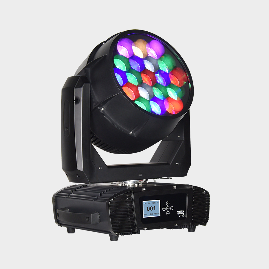 4. 產(chǎn)品使用19顆60W歐司朗LEDENGIN LZ7-04M2PD 6合1 LED燈珠(RGB+PC amber+Cyan+PC Lime),與19顆高清大尺寸光學(xué)透鏡有機結(jié)合,出光均勻柔和,混色純正,顏色變化多端,且有無閃爍控制功能設(shè)計。
